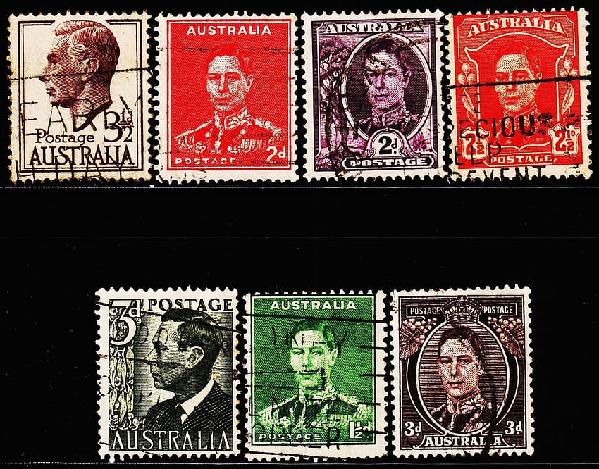 AUSTRALIA KGVI OLD 7 DIFFERENT USED STAMPS #2026