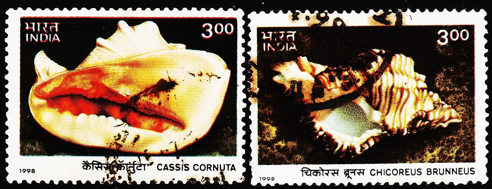 INDIA 1998 SEA SHELL 2 DIFFERENT USED STAMPS
