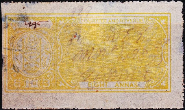 INDIAN PRINCELY STATE MANGROL 8AN COURT FEE REVENUE RARE OLD FISCAL STAMPS #3031