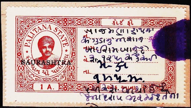 INDIAN PRINCELY STATE PALITANA 1AN CF REVENUE FISCAL RARE OLD STAMPS #3033